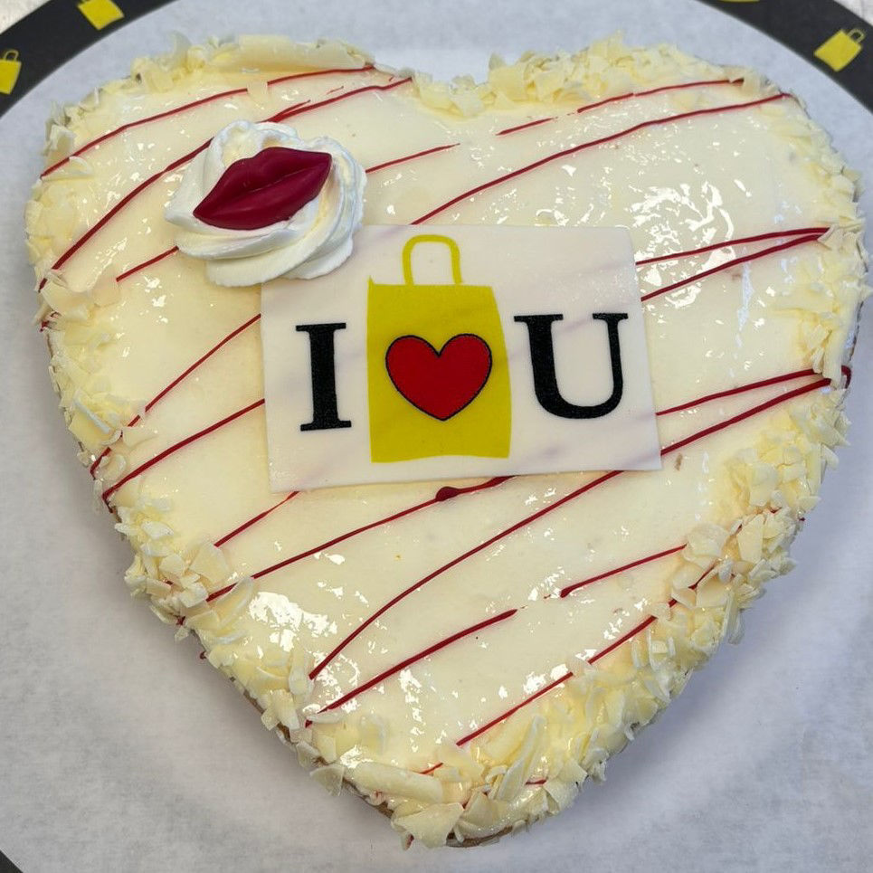 Valentijns vlaai is gevuld met kersen en daar boven op zit een witte chocolade bavarois.